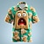 Noël Homme Dessin Animé 3D Visage Souriant bonhomme en pain d'épice Chemise Chemise Boutonnée Manche Courte Drôle Extérieur Fête Été Printemps Col Rabattu Impression 3D chemises à col Marron Vert