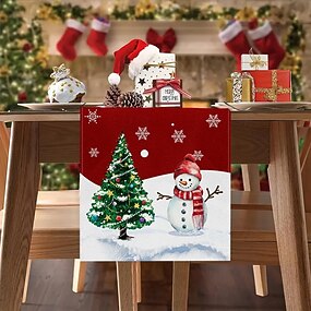 Chemin de table de Noël en coton et lin avec broderie bonhomme de neige, décoration de table de fête, décoration de table de fête de Noël