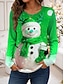 Noël Femmes T-shirt Graphique Bonhomme de neige ancien Élégant Classique manche longue Col en V Hauts Réguliers Quotidien Imprimé Noir et blanc Bleu Vert Beige Printemps Automne Hiver