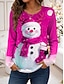 Noël Femmes T-shirt Graphique Bonhomme de neige Lettre ancien Élégant Classique manche longue Col en V Hauts Réguliers Quotidien Imprimé Rouge Bleu Violet Vert Printemps Automne Hiver