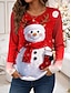 Noël Femmes T-shirt Graphique Bonhomme de neige ancien Mode Élégant manche longue Col ras du cou Hauts Réguliers Quotidien Week-end Imprimé Rouge Bleu Violet Dorée Vert Été Printemps Automne Hiver
