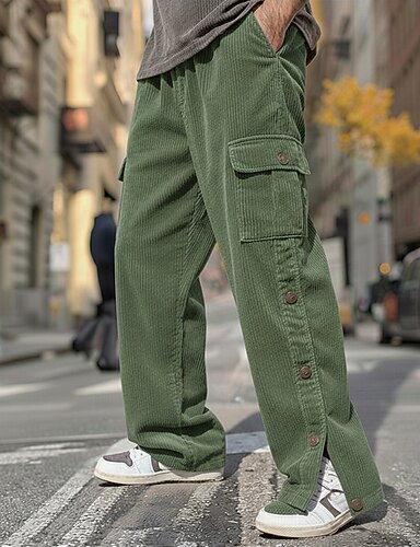 Homme Pantalons Cargo Pantalon cargo Pantalon en velours côtelé Fermeture éclair Avec Poches Boutons Couleur Unie Uni Doux Respirant Longueur complète Formel Bureau Travail Vacances Élégant bleu