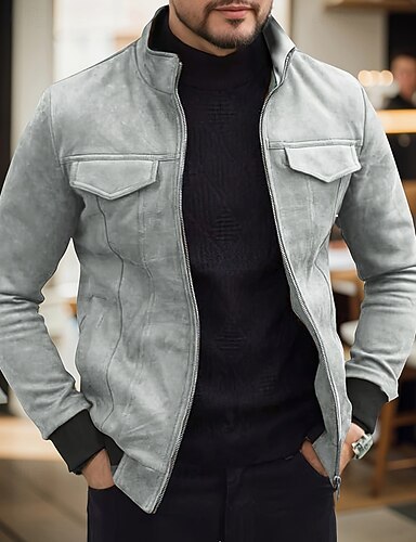 Homme Veste en faux suède Veste Décontractée Vacances Quotidien Chaud Avec Poches Automne Hiver Uni Mode Classique Col montant Régulier Noir Vert Café Veste