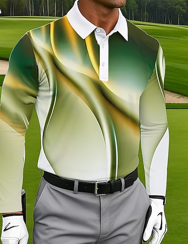 Homme Géométrique Golf Polo manche longue Polos Revers Occasionnel Extérieur Athleisure Tenue quotidienne Impression 3D Boutons Printemps Automne Hiver Gris foncé Bleu Vert