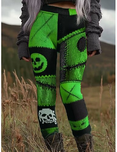 Femmes Leggings Vacances ancien Mode Longueur cheville Taille hautePantsHalloween Graphique Halloween Impression Doux Respirant Élastique Vacances Rue Décontracté Orange Vert Gris Printemps Automne