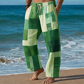 Homme Géométrique Plaid Patchwork Pantalons Pantalon décontracté Pantalons Amples Taille Moyenne Mode Maison Extérieur Vacances Taille élastique avec cordon de serrage Pantalon en lin avec poches Ét