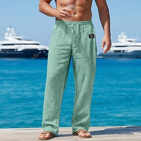 Homme Pantalons en Lin Pantalons Pantalon d'été Pantalons de Plage Cordon de serrage Avec Poches Jambe Droite Uni Confort Respirant Longueur complète Quotidien Extérieur Vêtements de rue Vacances Mode