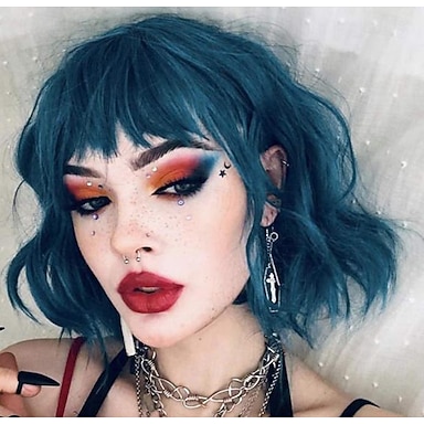 Perruque Synthétique Bouclé Avec frange Perruque Blond Bordeaux Court Auburn Rouge Bordeaux Grise Vert Blond Cheveux synthétiques Femmes Cosplay Doux Fête Blond Vert Bordeaux