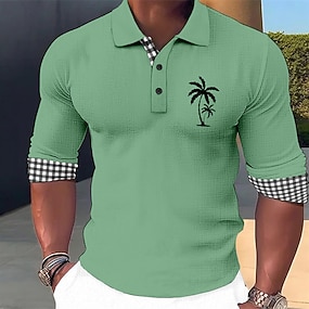 Homme Graphique Chemises Polo Gaufre manche longue Polos Chemises à Col Occasionnel Tenue quotidienne Boutons Printemps Automne Hiver Bleu Marron Vert
