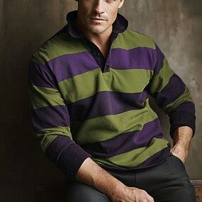 Homme Rayures horizontales Chemises Polo Gaufre Polos de Rugby Texturé manche longue Polos Revers Occasionnel Athleisure Tenue quotidienne Impression 3D Printemps Automne Hiver Bleu Marron foncé Vert