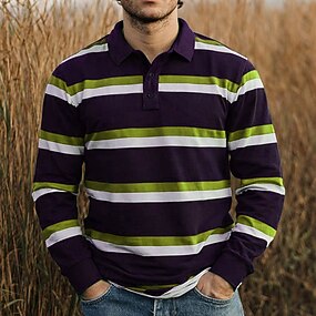 Homme Rayures horizontales Polo de rugby manche longue Polos Chemises à Col Occasionnel Extérieur Athleisure Impression 3D Printemps Automne Rouge Violet Marron