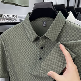Homme Polo Chemise de golf Vacances Occasionnel Revers Manche Courte Mode Muscle Plaid Patchwork Avec Poches Été Printemps Vert Polo