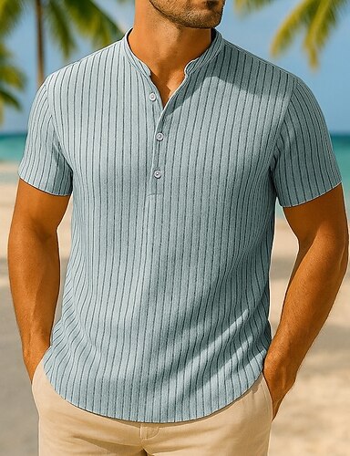 Homme Chemise Chemise en lin Chemise popover Chemise Décontractée Chemise en coton Rayure Vacances Rue Blanche Rose Claire bleu marine Vert foncé Manche Courte Band Collar Été Vêtement Tenue