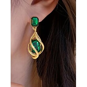 Boucles d'oreilles en alliage pour femmes, multicolores, design élégant orné de pierres précieuses, idéales pour Noël et les occasions spéciales.