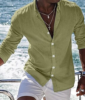 Homme Chemise en lin Chemise popover Chemise Décontractée Chemise à col officier Uni Vacances Croisière Noir Blanche Rose Claire bleu marine manche longue Col Printemps & Été Vêtement Tenue
