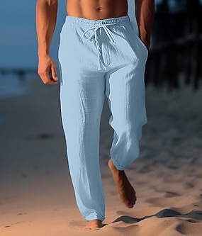 Homme Pantalon en lin Pantalon pantalon été Pantalon de plage Cordon Taille elastique Jambe droite Plein Confort Respirable Casual du quotidien Vacances Mode Style classique Kaki clair Noir