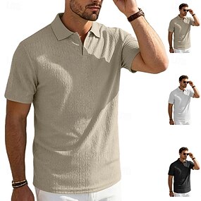 Homme Chemises Polo Gaufre Polo Occasionnel Rue Revers Manche Courte Basique Moderne Uni Poids Léger Respirable Été Printemps Coupe Ample Noir Blanche Bleu Roi Kaki Gris Claire Chemises Polo Gaufre