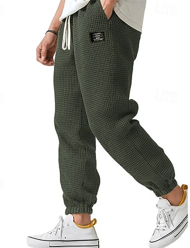 Homme Gauffré Joggings Pantalons Pantalons Amples Pantalon de survêtement droit Cordon de serrage Taille Élastique Couleur Unie Confort Longueur complète Extérieur Quotidien Vêtements de rue Mode