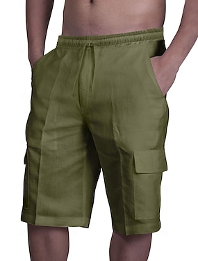 Homme Shorts cargo Shorts Shorts en Lin Shorts d'été Shorts de plage Cordon de serrage Taille Élastique Multi-poches Uni Longueur Genou Style Classique Occasionnel Noir Blanche Non Elastique