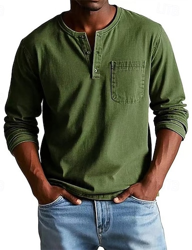 Homme T-shirt Chemise Henley Chemise à Manches Longues manche longue Henley Printemps Automne Uni Mode Designer Basique Poches Vacances Rue Sortir Noir Rouge bleu marine T-shirt haut de gamme pour