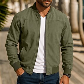 Homme Veste d'extérieur Bomber Veste en faux suède Formel Intérieur Zippé Poche Automne Hiver Couleur unie Actif Neutre Col Normal Noir Bleu Marron Vert Veste