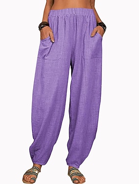 Pantalon sarouel 100 % coton pour femme, couleur unie, coupe ample et décontractée, idéal pour la maison, la rue et le quotidien.