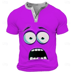 Homme Dessin animé Visage humain T-shirt Chemise Henley Manche Courte Designer Rétro Vintage Occasionnel Occasionnel Quotidien Rue Été Printemps Bleu Clair Jaune Vert bleu marine Violet Henley