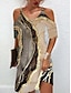 Femmes Mini Robe Robe Vintage Robe Décontractée Élégant ancien Mode Extérieur Vacances Sortir Coupe régulière Graphique Manche Courte Col en V Bleu Marron Été Printemps