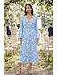 Femmes Robe Midi Robe Plissée Robe ajustée et évasée Vacances Anniversaire Occasionnel Date Coupe régulière Fleuri Graphique manche longue Col en V Bleu Rose Claire Orange Vert Été Printemps