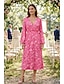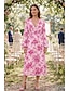 Femmes Robe Midi Robe Plissée Robe ajustée et évasée Vacances Anniversaire Occasionnel Date Coupe régulière Fleuri Graphique manche longue Col en V Rose Claire Orange Été Printemps