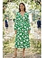 Femmes Robe Midi Robe Plissée Robe moulante Robe ajustée et évasée Anniversaire Occasionnel Formel Bureau Date Coupe régulière Fleuri Graphique manche longue Col en V Vert Claire Été Printemps