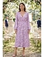 Femmes Robe Ensemble Robe Midi Vacances Fête Fleuri Imprimé Robe Midi Manche 3/4 Col ras du cou Quotidien Bleu Jaune Violet Printemps Automne Coupe régulière