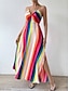 Femmes Robe à col licou Maxi en Satin Robe maxi Arc-en-ciel Sans manches Couleur Contrastée Bloc de Couleur Été Col Halter Vacances S M L