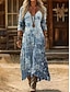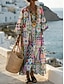 Robe Midi Femme Col V Manches Longues Kaftan Léger Coupe Ample Robe A Ligne Décontractée Boho Fête Sortie Graphique Florale Géométrique Manches Longues Col V Rouge Bleu Arc-en-ciel Automne