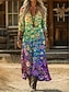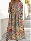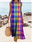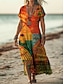 Femmes Robe Maxi Robe bohème Robe Décontractée Robe trapèze Robe Imprimée ancien Extérieur Vacances Week-end Coupe Ample Bloc de Couleur Manche Courte Col en V Arc-en-ciel Été Printemps