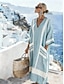 Robe Midi Femme Col V Manches Longues Kaftan Léger Coupe Ample Robe A Ligne Décontractée Boho Sortie Coupe Ample Graphique Géométrique Rayée Manches Longues Col V Cendre Noir Jaune Bleu