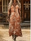 Femme robe longue Robes bohème chic Robe d'été robe de plage Tropique Décontractées Bohème Vacances Travail du quotidien Standard Petites fleurs Manche Courte Col V Revers Marron Arc-en-ciel Et