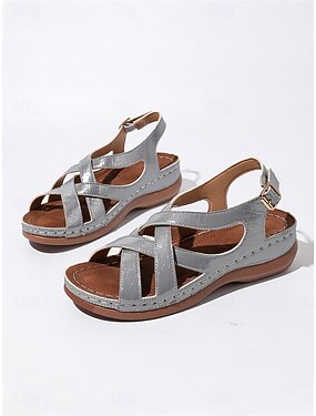 Tongs argentées pour femmes – élégantes sandales à brides avec bride de cheville ajustable, parfaites pour la plage, les vacances d'été et les journées décontractées.