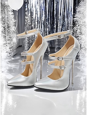 Escarpins à talons aiguilles argentés à triple bride – chaussures élégantes à talons hauts pour soirées et fêtes pour femmes