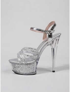 Sandales à talons compensés argentées pour femmes - Chaussures de soirée à bout ouvert pailleté pour la vie nocturne et les boîtes de nuit