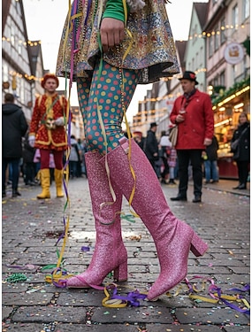 Bottes haute en paillettes roses pour femmes avec talons blocs - Éclatantes déclaration de mode audacieuse parfaites pour le carnaval les festivals et les fêtes costumées