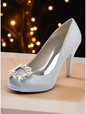 Escarpins à bout ouvert en satin pour femmes avec boucle en cristal - chaussures habillées à talons hauts classiques pour dames, parfaites pour les cocktails et les occasions en soirée