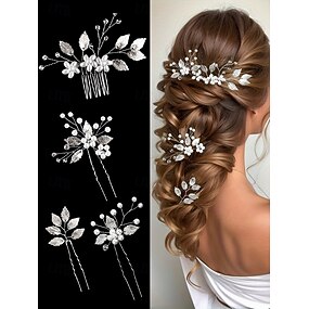 ensemble d'accessoires de cheveux de mariée en feuille d'or et d'argent avec fausses perles et cristaux - épingles à cheveux et peigne élégants pour femmes, parfaits pour les mariages et les occasions spéciales