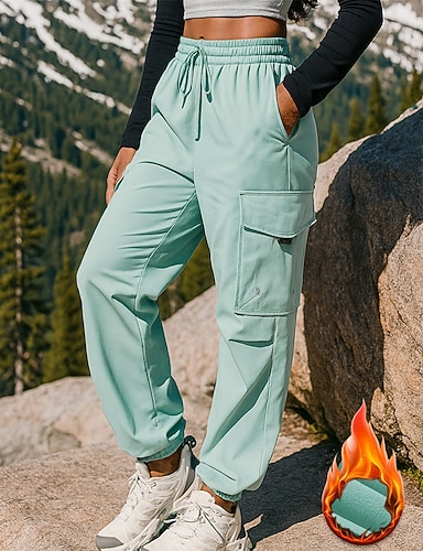 Femmes Pantalons Cargo Pantalons de randonnée Pantalon en molleton Pantalon thermique Extérieur Coupe régulière Chaleur Thermique Imperméable Coupe-vent Pantalons Taille Élastique Noir Vert Véronèse