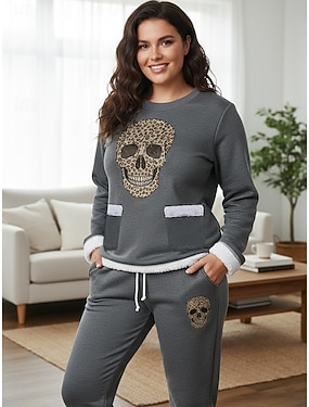 Femmes Élégant Chaud Mode Ensembles deux pièces Survêtement Ensembles de Pantalons manche longue Col ras du cou Graphique Imprimé Extérieur Vacances Quotidien Noir Rose Claire Gris foncé Printemps