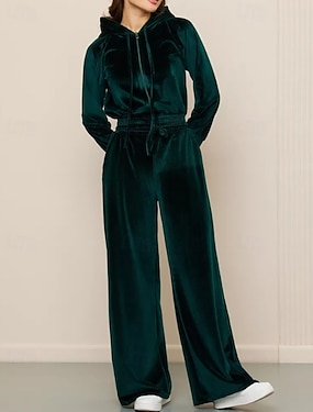 Femmes Mode Streetwear Quotidien Ensembles de Pantalons manche longue Col en V Uni Occasionnel Quotidien Noir Vert Véronèse Bleu Automne Coupe régulière