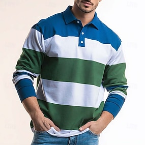 Homme Rayé Polos de Rugby manche longue Polos Col Vêtement décontracté de travaile Formel Extérieur Tenue Quotidienne Impression 3D Boutons Printemps Automne Hiver Rouge Bleu Encre Vert