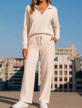 Femmes Tenues 2 pièces Survêtement de détente Cordon de serrage Couleur Unie Ensemble Vêtements Automne Noir Blanche Métier Extérieur Voyage Léger Mode manche longue Sport Tenues de Sport