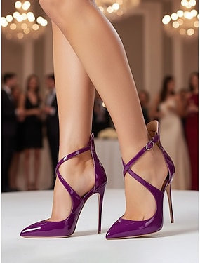 Escarpins à talons aiguilles et brides en cuir verni violet pour femmes - Chaussures habillées à bout pointu pour événements formels et cocktails