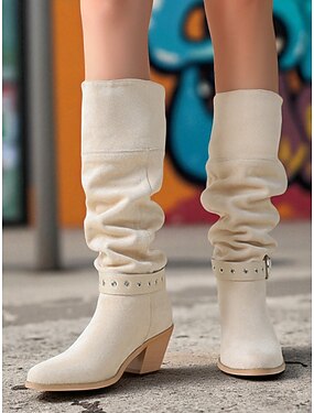 Bottes souples marron à rabat pour femmes avec talons moyens - Bottes de style western en faux daim à tige convertible à 2 voies pour le streetwear quotidien et les tenues d'automne